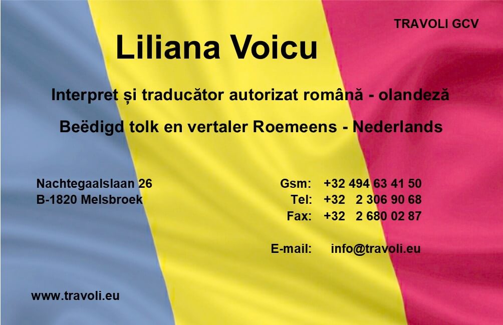 mijn naam is Liliana Voicu, ik ben beëdigd tolk en vertaler Roemeens Nederlands, Nederlands Roemeens.